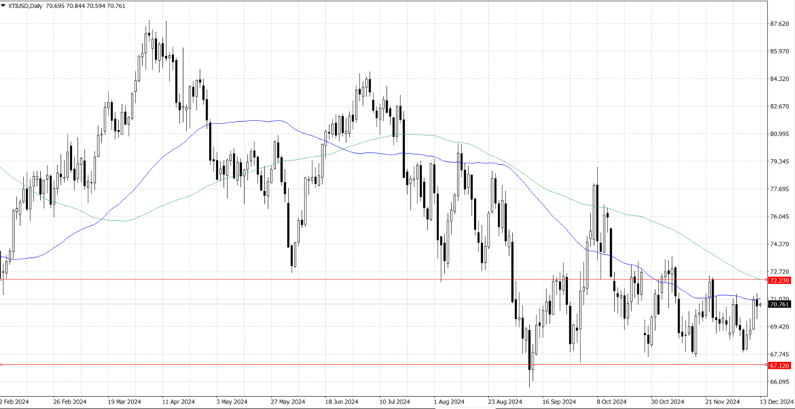 West Texas Intermediate (WTI) US Crude Oil prices gain a bullish momentum in this week and trade around $… during the Asian session on Friday. Although the commodity remains on track for strong weekly gains, it faces mixed fundamental drivers. OPEC+ recently decided to delay planned supply increases by three months and extend the full unwinding of cuts until 2026, reflecting concerns over potential demand slowdown, which weighs on prices. Additionally, the International Energy Agency forecasts that non-OPEC+ nations will boost supply by 1.5 million barrels per day next year, outpacing the expected demand growth of 1.1 million bpd, adding pressure on crude prices. However, downside risks are limited by supply concerns linked to tighter sanctions on Russia and Iran. Support is also drawn from hopes that Chinese stimulus measures could boost demand and signs of US economic resilience. Despite these mixed factors, the market remains range-bound, warranting caution before making aggressive directional moves on oil prices.