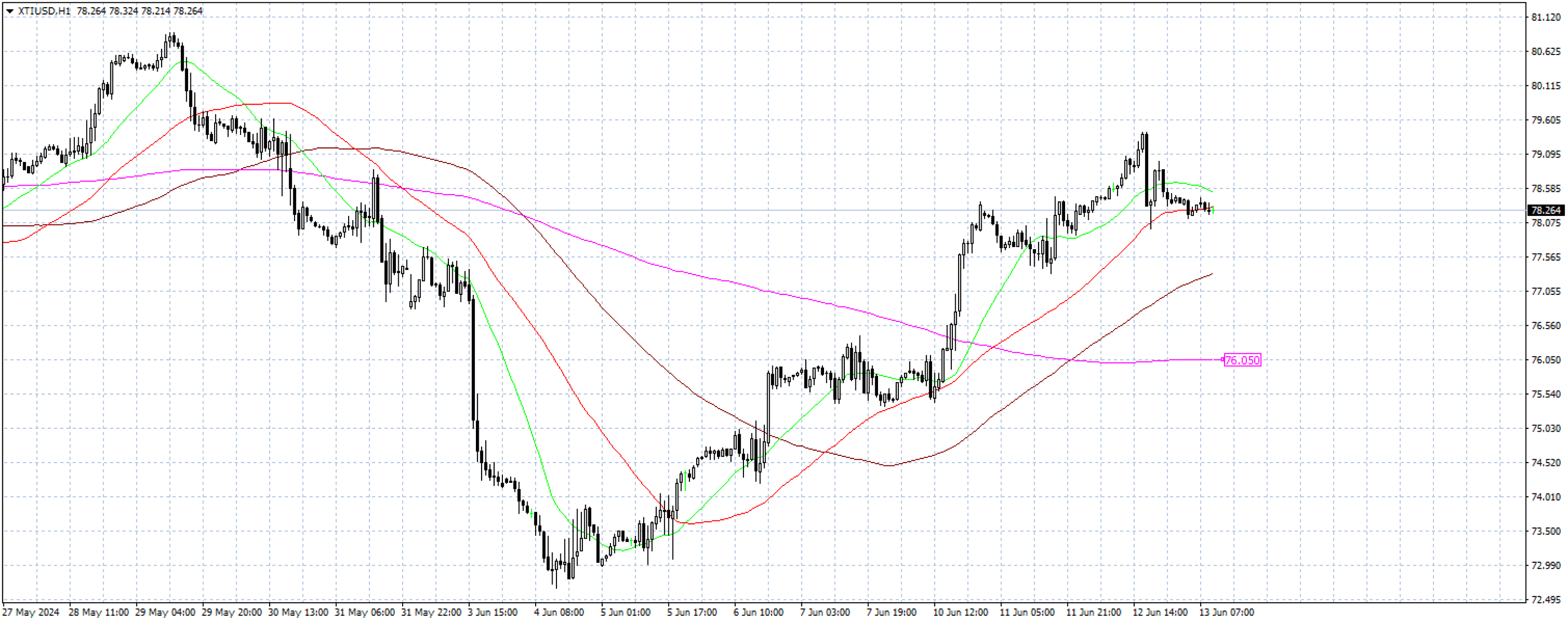 West Texas Intermediate (WTI) crude oil prices were affected by an unexpected increase in U.S. inventories and a downward revision of the International Energy Agency (IEA) demand growth forecast. After reaching a two-week high of $79.41 on Wednesday, prices briefly fell below $78. The reduced expectations for Fed rate cuts may limit crude oil price gains, but geopolitical tensions could provide some support.