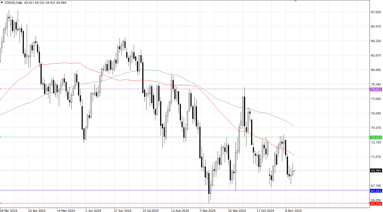 A stronger US Dollar could cap oil price gains, as a higher dollar makes oil more expensive for foreign buyers, reducing demand. The US Dollar Index (DXY) is trading near 106.90, following a year-to-date high of 107.05. Dennis Kissler of BOK Financial noted that crude futures are trying to find equilibrium as the rising dollar and potential policy shifts under a Trump-controlled Congress may influence energy policies. Additionally, OPEC's recent downward revision of global oil demand growth for 2024 and 2025, driven by weak demand in China and India, adds further pressure on WTI prices.