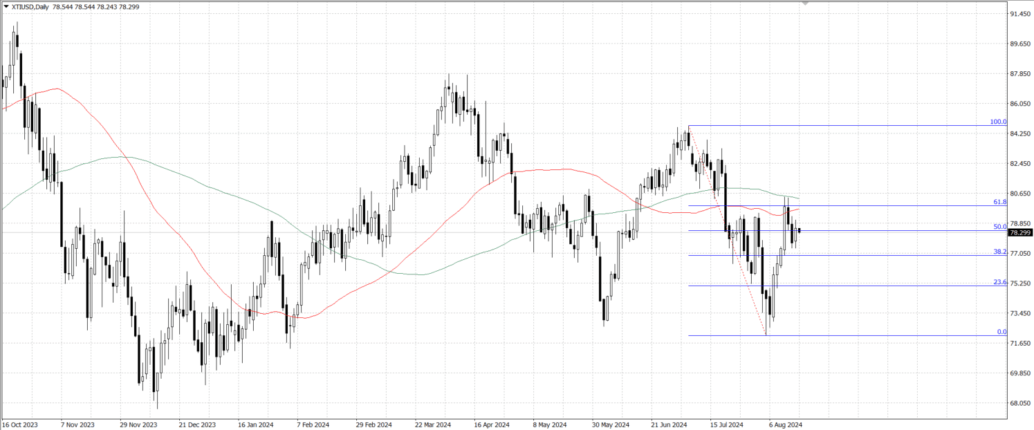 The price of WTI crude oil is affected by multiple factors, showing a certain downward pressure. First, uncertainty over China's economic recovery continues to weigh on market sentiment, especially on the back of new loans falling to a 15-year low in July, reflecting weak domestic demand. The weak demand outlook from China, the world's largest importer of crude oil, has weighed on crude prices. In addition, OPEC and the IEA cut their forecasts for crude oil demand growth in 2024, adding to concerns about slowing global demand. On the other hand, ongoing geopolitical tensions in the Middle East, particularly Iran's preparations for possible retaliation for the attack on the Hamas leader in Tehran, have raised the risk of supply disruptions. That provided some support for oil prices, but so did expectations that the Fed was about to start a rate-cutting cycle. The dovish U.S. CPI data strengthened the likelihood of a Federal Reserve rate cut in September, which in turn raised expectations for economic activity and fuel consumption.
