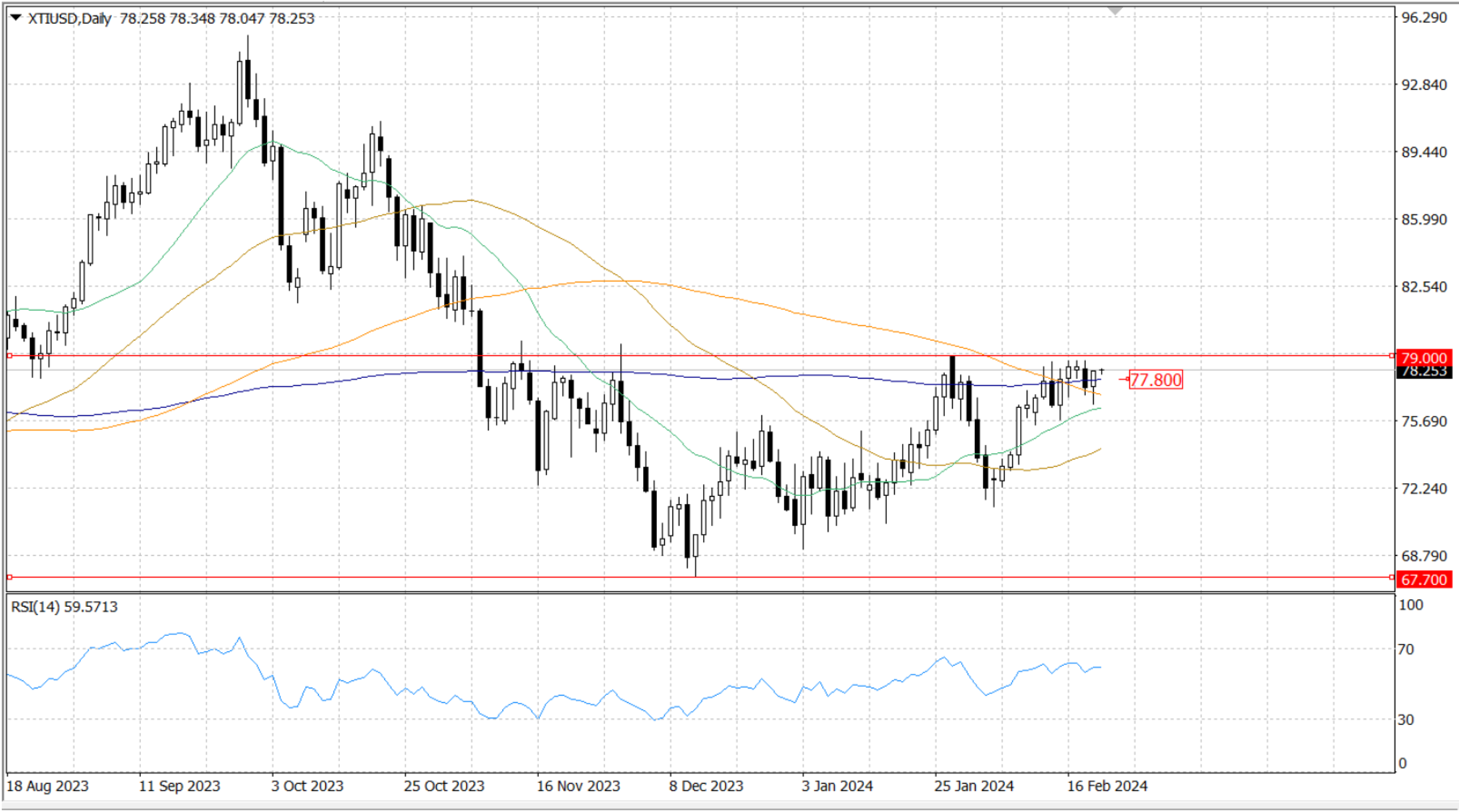 Israel carried out airstrikes on Hezbollah in Lebanon and Houthi attacks on a second commercial ship in the Red Sea. Israel has received advice from the US not to assault Rafah on the ground without a plan in place to protect civilians. WTI prices are rising as a result of growing concerns about the availability of crude oil due to the unrest in the Middle East.