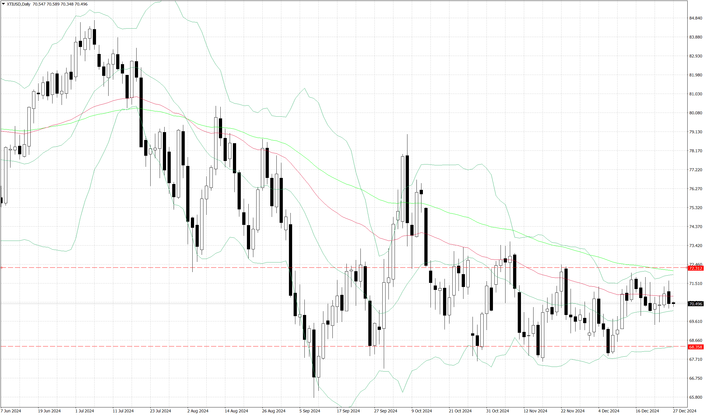 Gold maintains momentum with a 27% year-to-date gain, driven by central bank purchases and safe-haven demand amid geopolitical tensions. The metal finds additional support from moderating US PCE inflation data and anticipated Fed rate cuts, though dollar strength near two-year highs poses immediate headwinds. Market focus shifts to potential policy shifts under the incoming Trump administration.