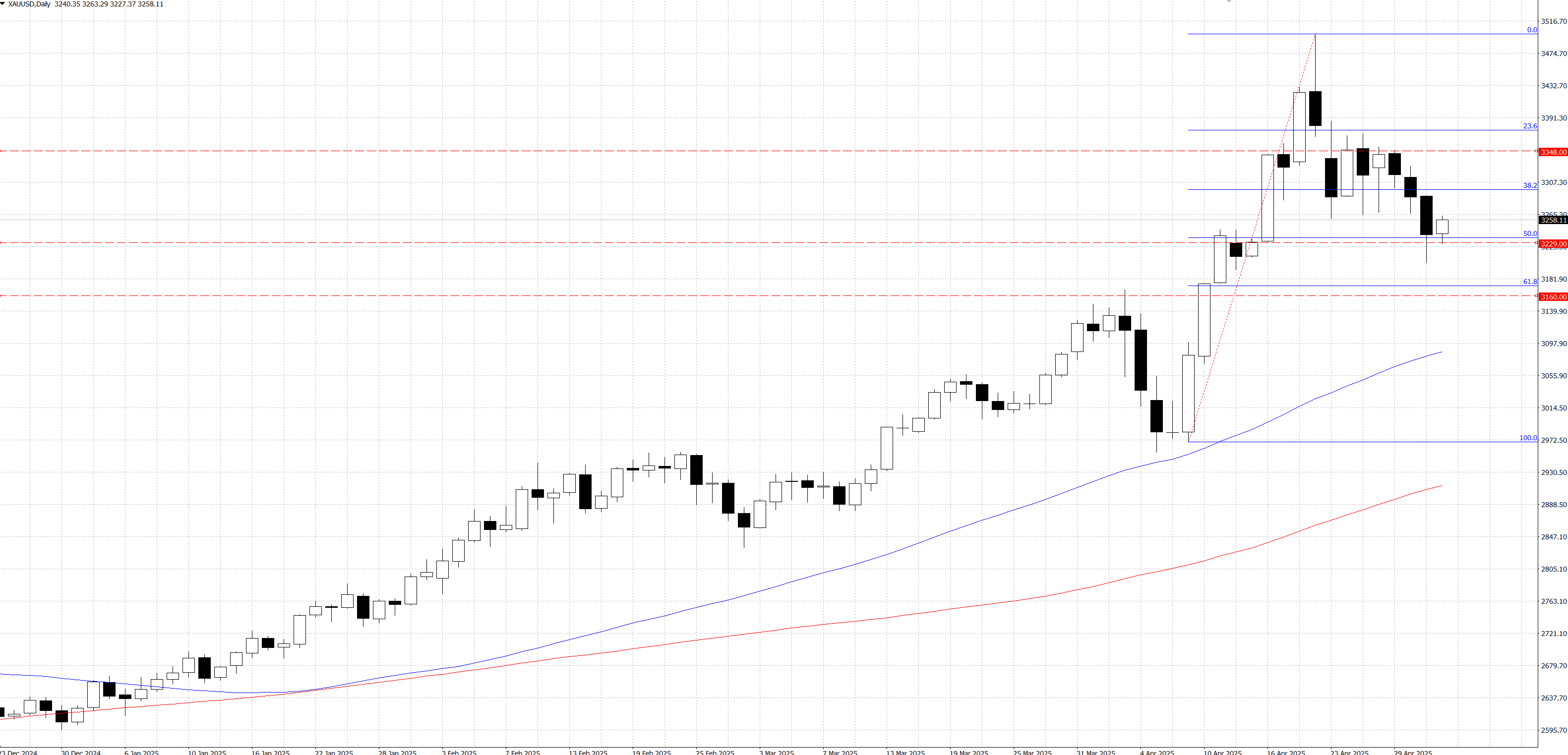 Gold has edged slightly higher in early European trade but remains capped below the former $3,260–3,265 support zone—now acting as resistance—reflecting a lack of bullish conviction even as the dollar, having paused a three-day rally at a three-week peak, offers support to the non-yielding metal. Optimism over a potential de-escalation in US–China trade tensions—underscored by Beijing’s confirmation of fresh US overtures to negotiate tariffs—has buoyed risk sentiment and lent strength to the greenback, while traders brace for this Friday’s US Nonfarm Payrolls report for further Fed policy clues. Recent US data have fueled dovish Fed expectations: first-quarter GDP unexpectedly contracted for the first time since 2022, the PCE Price Index showed easing inflation, the ADP survey signaled a cooling labor market, initial jobless claims rose to 241,000 (their highest since February), and the ISM Manufacturing PMI held in contraction at 48.7 in April. Against this backdrop, markets price in four quarter-point rate cuts by year-end and anticipate April’s payrolls to rise by 130,000 (down from 228,000 in March), with the unemployment rate steady at 4.2% and average hourly earnings up 0.3%.