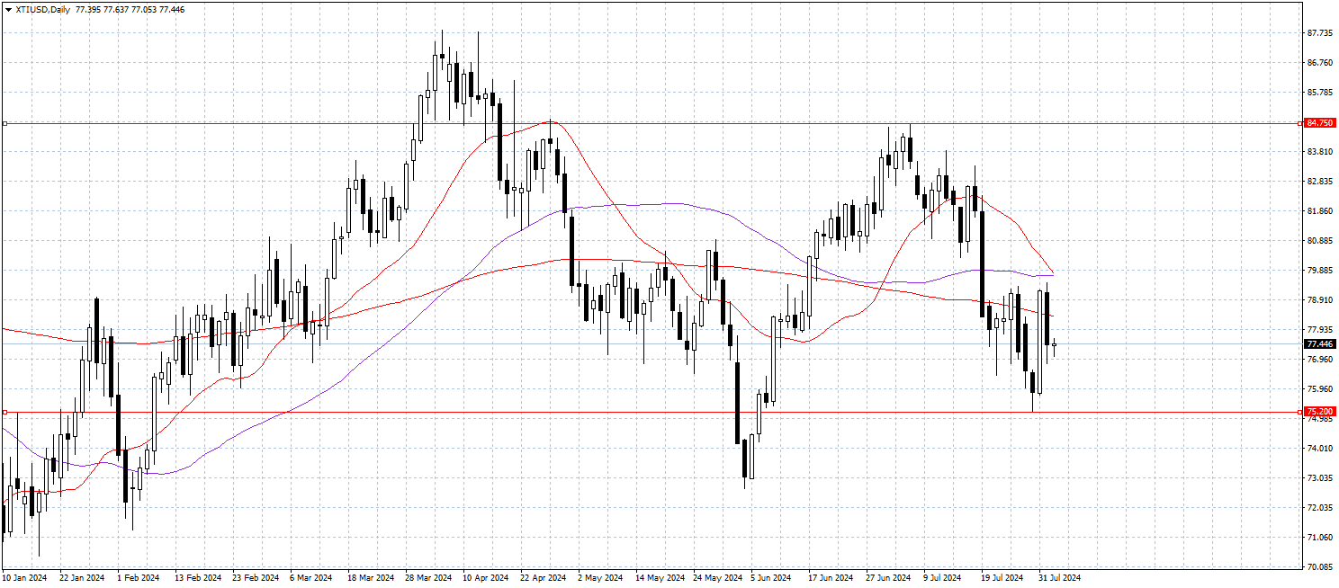 West Texas Intermediate (WTI) crude oil prices edged higher during the Asian session on Friday. Despite ongoing global concerns about oil demand, the escalating geopolitical tensions in the Middle East, which pose supply risks, may support oil prices. Weak Purchasing Managers' Index (PMI) data from the U.S. and China have heightened concerns about oil demand. The U.S. July ISM Manufacturing PMI fell to an eight-month low of …, down from … and below the expected …. Similarly, China’s July Caixin Manufacturing PMI came in at …, lower than the expected … and previous …. Last week’s low of $… per barrel will act as a support level for XTI/USD in the near term, while the July 5 high of $… will serve as a significant resistance.