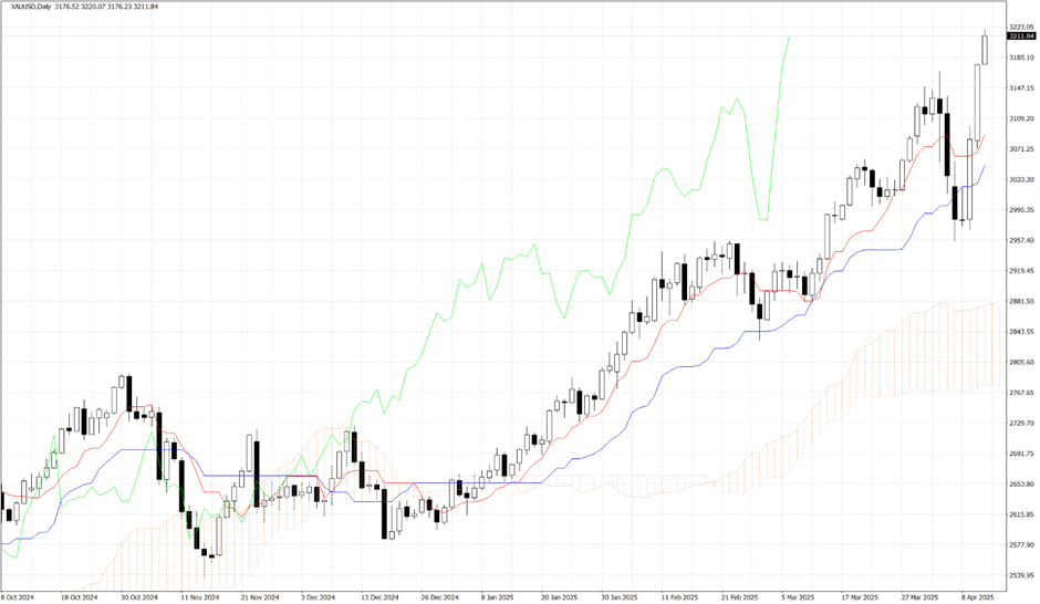 Gold prices have rocketed higher, smashing through the $3,200.00 mark to post fresh record highs, driven primarily by escalating US-China trade tensions and growing expectations for US Federal Reserve interest rate cuts. Concerns surrounding US economic stability, fuelled by the imposition of a confirmed 145% effective tariff rate on Chinese goods and China's retaliatory measures, have significantly dented the US Dollar and bolstered gold's safe-haven appeal. Softer-than-anticipated US March Consumer Price Index (CPI) data further solidified market bets on aggressive Fed easing, adding considerable upward thrust to the precious metal, despite normally being a headwind. However, the sheer speed of the ascent raises the prospect of profit-taking, particularly given potential end-of-week market repositioning. Market sentiment remains overwhelmingly bullish, underpinned by fears of a trade war-induced global slowdown and anticipation of looser US monetary policy, though some caution is creeping in after the sharp rally.